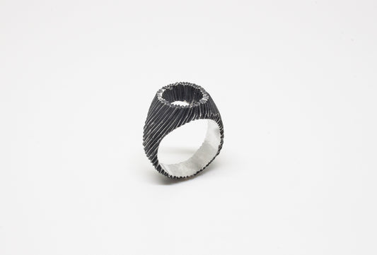 Irregular Carved Ring, Oxidated Silver